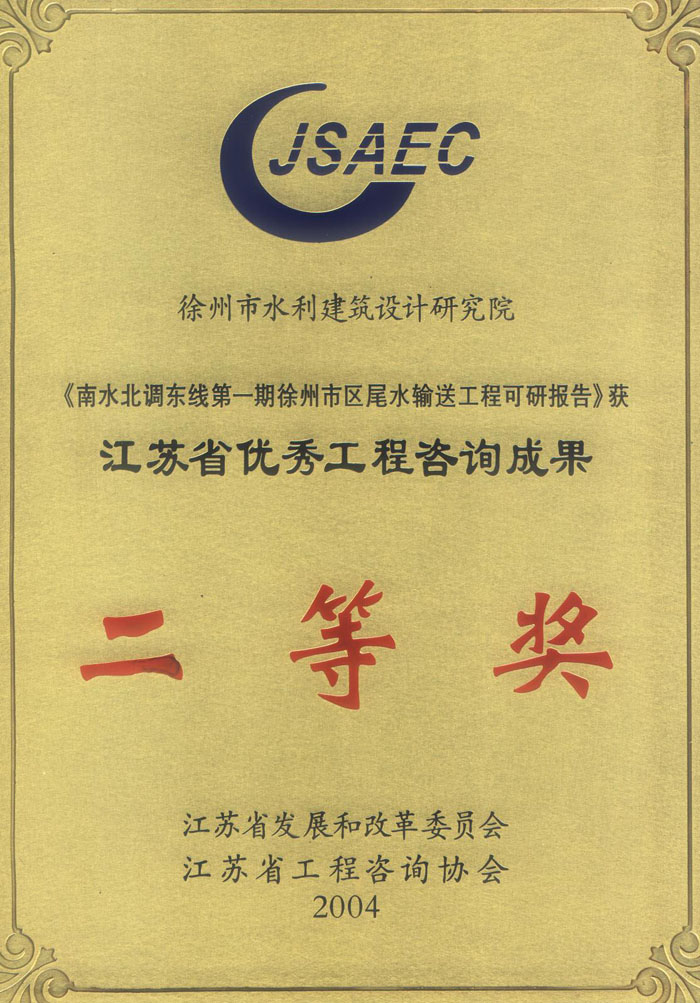 《南水北調東線(xiàn)一期尾水輸送可研》省咨詢(xún)成果獎(2004)