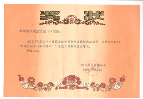 《新城區防汛抗旱指揮中心》市建設系統優(yōu)秀工程勘察三等獎